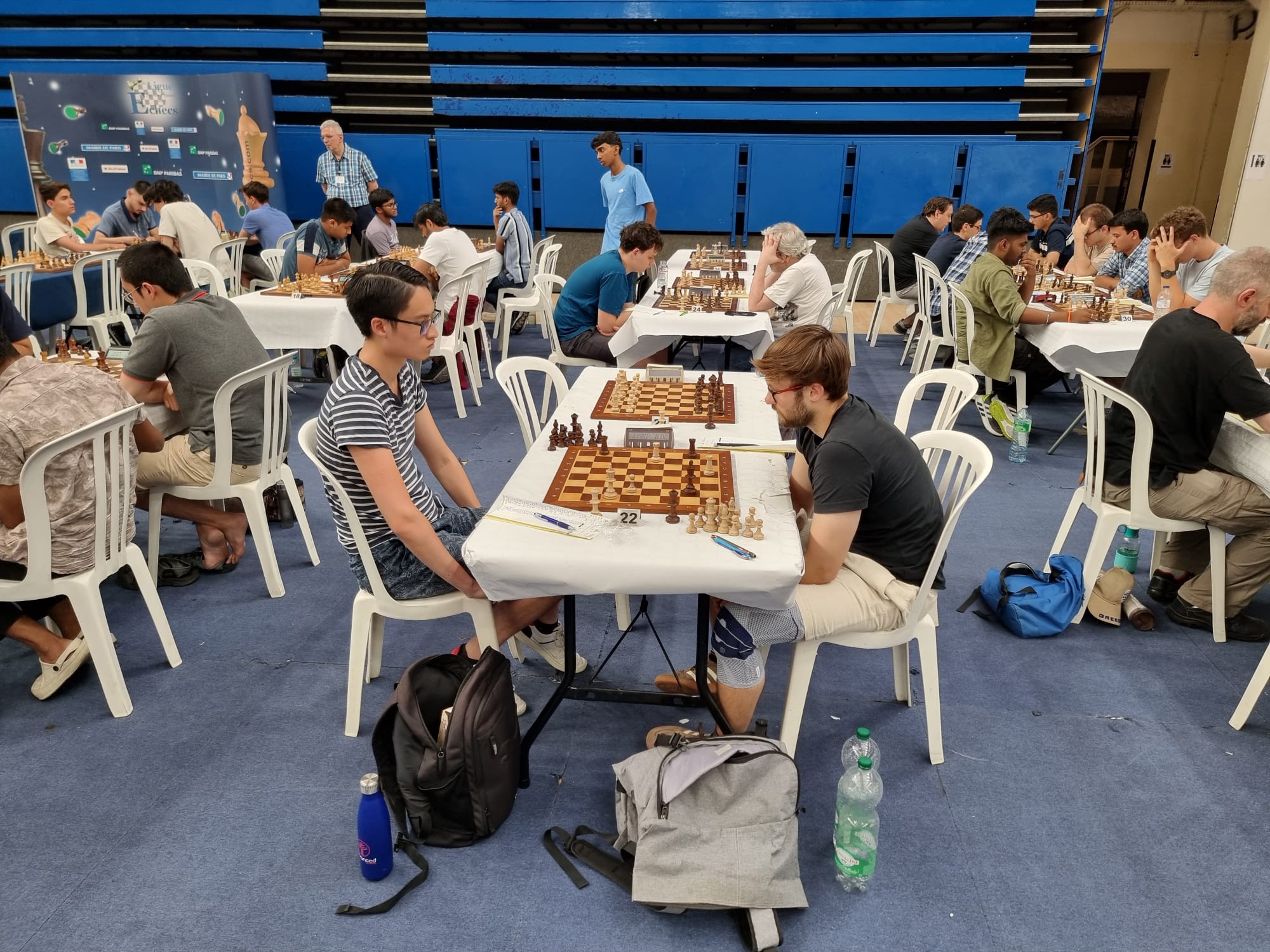 Die Anreise per Flixbus von Halle via Hannover nach Paris verlief ohne Komplikationen, so dass wir überpünktlich am Ziel eintrafen. Nach einem typisch französischen Frühstück (Croissant und Kaffee) machten wir uns zum Spiellokal, um uns zu registrieren. Dort angekommen, wurden wir mit einer unangenehmen Realität konfrontiert: Die Fassade (in dem Fall das Spiellokal) machte viel her. Gespielt wurde in einer Halle, die letztes Jahr Wettkämpfe der Olympischen Spiele beherbergte. Wenn man allerdings hinter das Äußere blickte, stieß man auf Folgendes: Gartenstühle aus Plastik? Papiertischdecken? Jahrealtes Spielmaterial? Keine Klimaanlage oder Lüfter bei über 30°C und ca. 800 Teilnehmern? Sanitäre Anlagen, wo mal wieder feucht durchgewischt werden sollte? Herz, was willst du mehr?