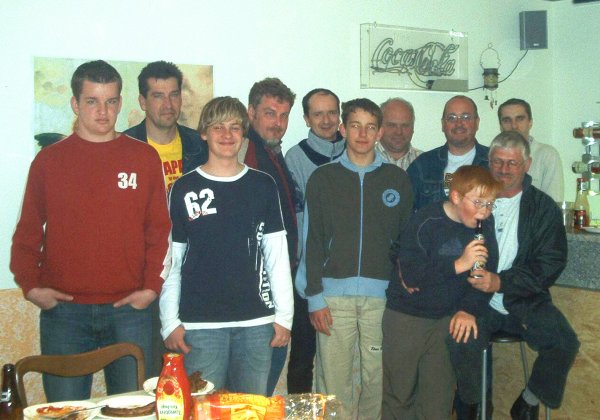 Inzwischen stießen noch mit Christian und Carsten Daus weitere Vereinsmitglieder zum Pulk. Ganz zu letzt traf auch noch der Chevaliere mit Ziehsohn Kevin, vom Delitzscher Himmelfahrtsblitz kommend, frisch motiviert ein. Während bei allen anderen die Motivation ca. 21.00 Uhr langsam erlosch, Sabine Kunze wieder ihre Männer abholte und sich auch die beiden älteren Herren wieder mit dem Rad in Richtung Heimat machten, hielt sie sich bei dem Chevliere noch bis kurz vor Mitternacht. Von den sonst jährlich auftretenden Heimfahrtproblemen des Chevaliers ist dem Berichterstatter nichts zu Ohren gekommen. Die zwei Zörbiger schafften übrigens wieder ein unfallfreies Überwinden der anfangs erwähnten Bundesstraße.