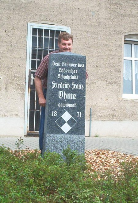 Schon 10 Minuten vor der geplanten Zeit trafen die zwei Vorkämpfer des Schachradsportes am Franz-Ohme-Denkmal in Löberitz an. Kurz danach kamen Andreas und dessen Filius Sebastian an.