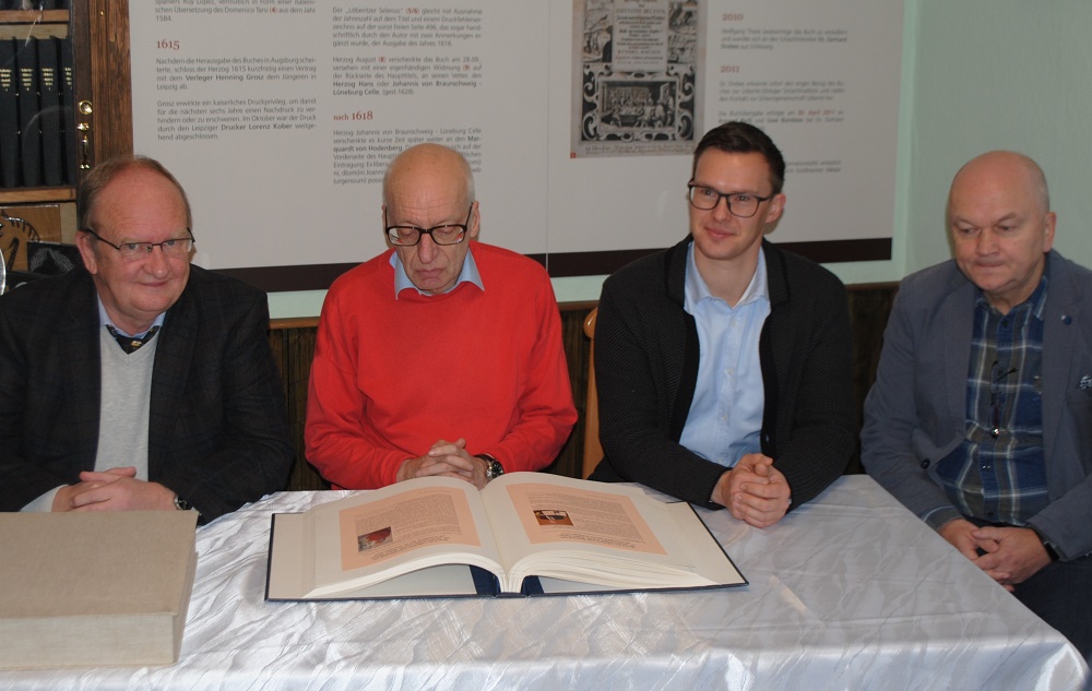 Vor der großen Museumsführung und einer Gesprächsrunde bei Kaffee, Tee oder Glühwein gab es eine Ehrung durch die Stadt Zörbig repräsentiert durch Bürgermeister Matthias Egert. Großmeister Dr. Robert Hübner und der Ex-Amateurweltmeister Dr. Gerhard Köhler trugen sich im Beisein des LSV-Vizepräsidenten Roland Katz ins Goldene Buch der Stadt Zörbig ein.