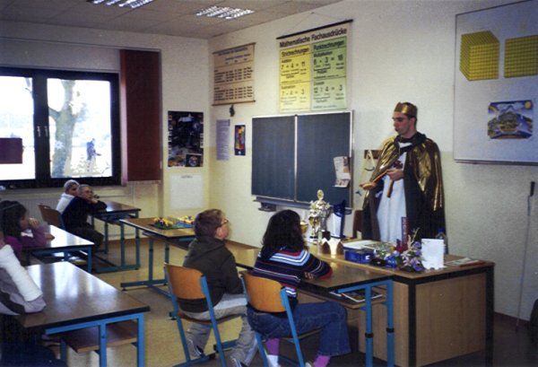 Also wie gesagt, ich war selber nicht so richtig überzeugt. Doch als mich Ronny vorige Woche gefragt hat, ob ich nicht mitmachen möchte, wollte ich auch nicht "nein" sagen. Der Aspekt, vor Grundschülern zu stehen, hat mich ja schon irgendwo gereizt. Naja ...: Ich mach ja alles mit. Die Frage war eben nur: "Was genau erzählen?"