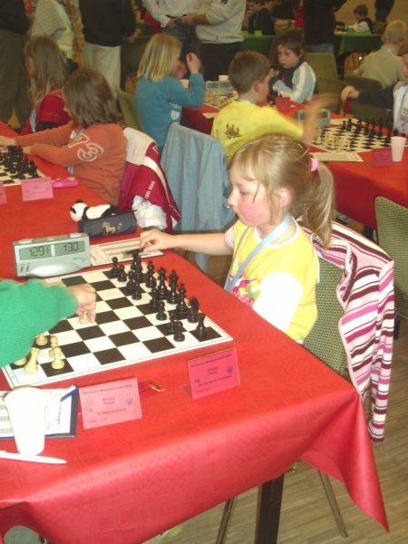 sah, sie bauen auf und die Partie ist beendet, muss Effi meinen etwas zweifelnden Blick bemerkt haben. Sofort stellte er energisch seinen schwarzen König nach e5!"). Sandra kann heute kurzzügig Annett "rächen", die gestern überraschend gegen Nadine Busse verlor. Susi spielte zum Auftakt bis Anschlag, konnte aber einen Mehrbauern nicht verwerten. Startete in Runde zwei die Aufholjagd?