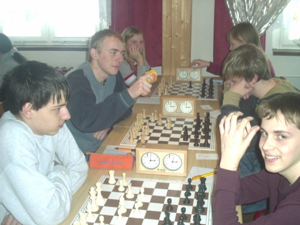 Für die Landesmeisterschaften der Erwachsenen haben sich Annett Hofmann und Jakob Engelmann aka JayJay qualifiziert. Beide eigentlich souverän, aber JayJay doch mit dem kleinen "Fehler" der Letztrundenniederlage gegen Marcus Bertz. Christians 4/7 kann man auch nicht oft genug würdigen. Ich bin ja bekanntlich kein Freund der DWZ-Gier, aber sein Zugewinn dürfte astronomisch ausfallen.