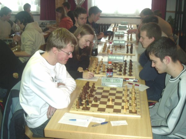Eine weitere Überraschung gab es in der U18m, wo Marius-Florin Jahner ein sehr starkes Turnier spielte und immerhin mit Schwarz dem Ansturm von Favorit Micha Strache standhielt (der wegen einer vorherigen Niederlage gegen Matti Reichel unbedingt gewinnen musste). Etwas tragisch der Ausgang in der U14m für Eric Gröger, der gegen Kevin Schiffner überzog und so den möglichen Titel verspielte.