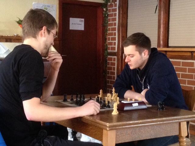 Nico mit Weiß gegen Nicklas Wernicke, Sebastian mit Schwarz gegen Nico Schulze und Annika mit Schwarz gegen Tina Kümmel.