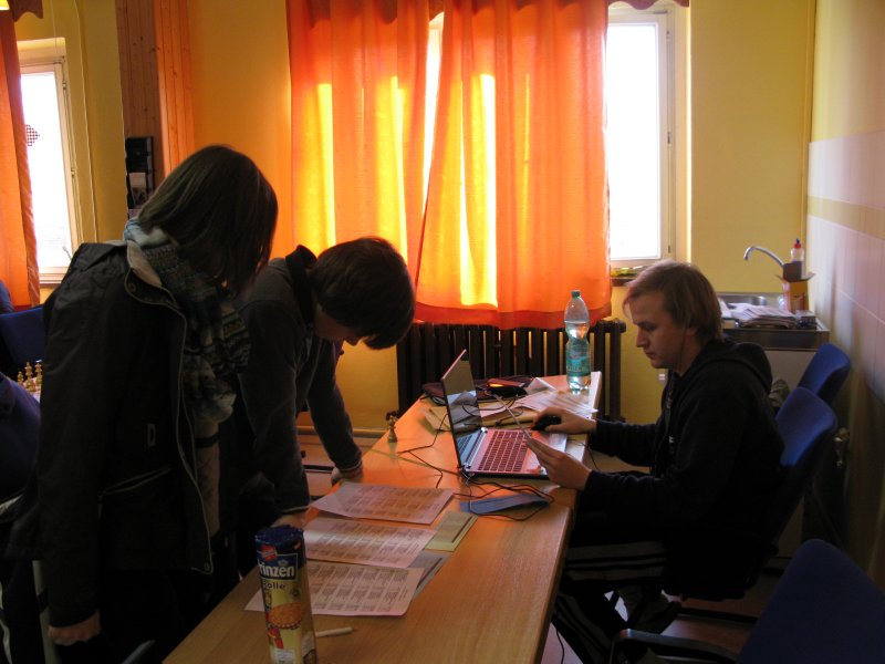 Gestärkt vom Mittagessen (Frikadelle & Bohnen) – wurde noch ein wenig ausgeruht und der Vorbereitung ein Feinschliff verpasst. Die nächsten Paarungen: Nicolas mit Schwarz gegen Maximilian Garbe, Sebastian mit Schwarz gegen einen der stärksten Konkurrenten Robert Stein und Annika gegen die ihr DWZ-technisch überlegene Nathalie Wächter – ebenfalls mit dem dunklen Königreich in ihrer Hand.