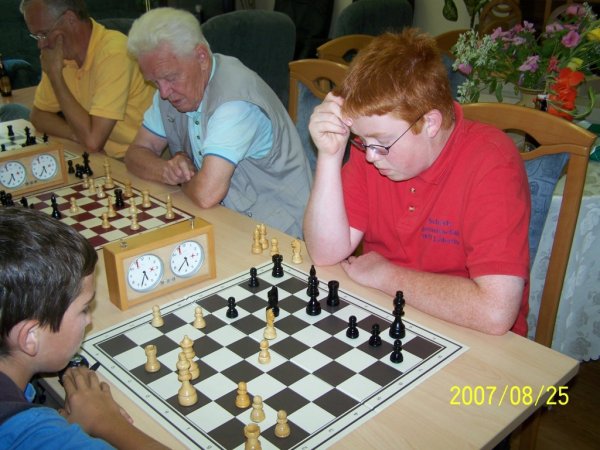 20.08.07: Mainz war allemal eine Reise wert, auch wenn die Sachsen-Anhalter Ergebnisse eher durchwachsen ausfielen (nur Jürgen konnte letztlich mit seiner Leistung zufrieden sein). Die Ergebnisse 1. David Navara (9,5); 172. Tom (6,5); 219. Jürgen (6,5); 320. Riker (6,0); 341. Normi (5,5); 564. Mikly (4,5).