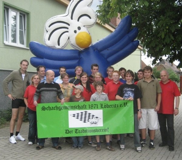 31.07.07: Nachdem der Auftakt noch recht verregnet war und der Schachteil deshalb in der Hallenser Ullrichskirche stattfinden musste, hielt das Wetter gestern bei der Löberitzer Etappe. Konrad berichtet: "Die Schachspieler des DSB, die vorrangig aus Cottbus und Osnabrück kamen und von einigen Schachfreunden aus Halle begleitet wurden, machten bei ihrer Fahrt von Leipzig nach Dresden Station in Löberitz. Fußball, Schach, Museumsbesuch und Grillen beinhalteten unser Angebot, welches gut angenommen wurde. Zum Glück spielte das Wetter mit. Unsere Jugend verlor leider das Fußballspiel knapp 2:3."