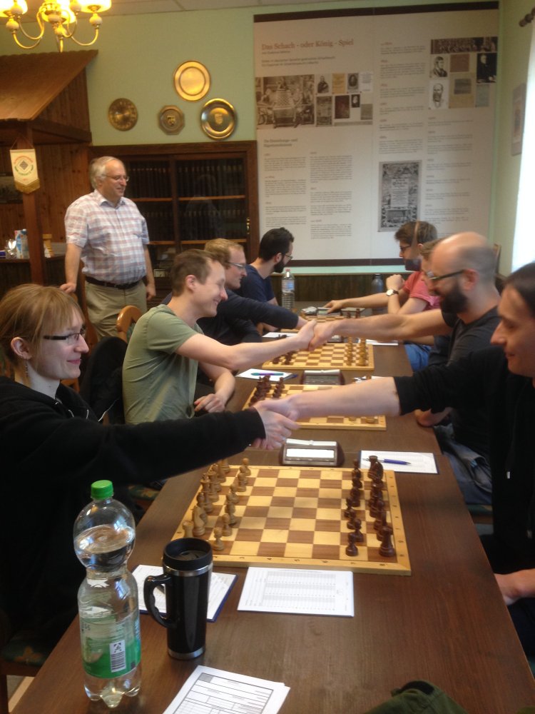 30.01.17: Löberitz war am Wochenende Gastgeber für die Vorrunde im Deutschen Mannschaftspokal. Mit 1,5:2,5 scheiterten wir dabei knapp an der Oberliga-Konkurrenz aus Leipzig. Nico und Sebi hatten mit Sieg und Remis für Berliner Rückenwind gesorgt, den Christian S. und Norman leider nicht nutzen konnten. Lübbenau setzte sich im Parallelkampf nach Blitzentscheid gegen Oberschöneweide durch.Anderntags gewann die SG Leipzig auch gegen Lübbenau und steht in der Zwischenrunde.