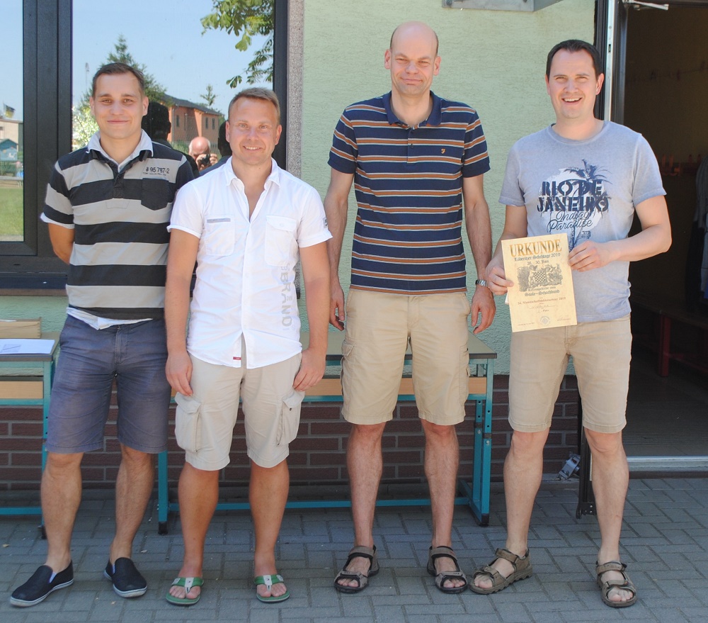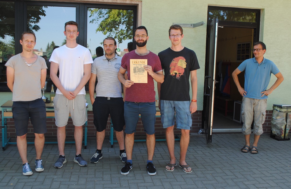 Die komplette Versorgung sowie der An- und Abtransport der Tische, Stühle und Bänke lag in den Händen von Andreas. Bei der Abholung am Freitagmittag aus Stumsdorf beteiligten sich neben dem Präsidenten Thomas Richter, Konrad Reiß und Heiko Thomaschewski. Dankenswerter Weise konnte der Transporter der Firma Orban aus Brachstedt genutzt werden. Beim Aufbau in Löberitz kamen noch Uwe Bombien, Carsten Daus und Stefan Grube hinzu.