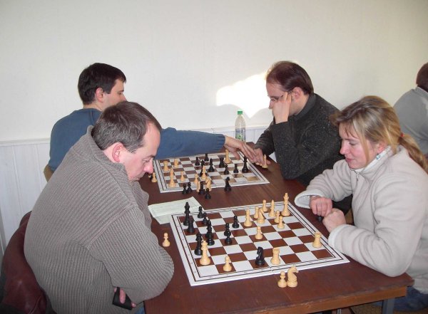 In den ersten drei Stunden tat sich nach meinem Empfinden nichts Ungewöhnliches, einzig Yogi versuchte mit aller Macht die insgesamt sehr gute Vorbereitung der stark aufgestellten Hallenser zu umgehen, was aber in einer totalen Weißeröffnungskatastrophe mündete. Gewohnt optimistisch gestimmt sah ich die Sache aber nicht so dramatisch, da die Stellung zum Glück recht lange geschlossen blieb. Einzig kritisch betrachtete ich Miklys Holländer, obwohl objektiv vielleicht noch alles im Lot war. Mir erschienen seine Fortschritte beim Königsangriff jedoch zu gering, während Andrea am Damenflügel schon Einsammeln drohte.