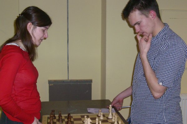 Bei uns gab es einen recht ausgeglichenen Kampf. Ich erhielt eine schlechte Stellung, konnte mich aber wieder einmal erfolgreich in den Remishafen retten. Auch an den anderen Brettern gab es kaum Entscheidungen. Tom und Claudia spielten Remis. Jürgen konnte sein besseres Endspiel nicht verwerten und willigte ebenfalls in das Remis ein. Micha Becker hatte seinen Gegner hingegen fest im Griff und fuhr seinen vierten Sieg für uns ein. Conny verlor in der Eröffnung ein Tempo, was ihr Probleme bereitete und schließlich zum Verlust führte. Die Letzten waren Manfred mit einem leicht besseren Damenendspiel und Jens, der in ärgster Zeitnot ein verlorenes Springerendspiel gegen Judith verwalten musste. Doch irgendwie ist uns der Schachgott in dieser Saison hold.