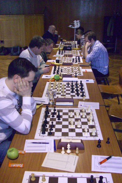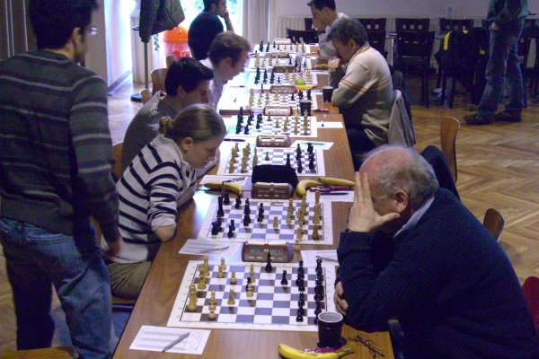 So ging es im Autokorso von der O (siehe o.) zur M, was auch nicht viel weiter war als die zwei Buchstaben, die sie im Alphabet trennt. Wieselflink waren Tische, Bretter, Uhren und der Spielbericht vorbereitet, um gegen 10.20 Uhr mit 20 min Zeitvorteil doch noch in den Sonntag zu starten. Beim Gastgeber fehlten Biedi und Lars-Peter, wir spielten ohne Simon und mit insgesamt nur 8 Damen. Für uns war es an der Zeit, wieder mal zu punkten, um die ohnehin nicht allzu prickelnde Saison nicht anbrennen zu lassen - wer mag schon den Abstiegsstrudel. Die Nervosität schien sich direkt auf die Bretter zu übertragen, Holly meinte, dass an den meisten Brettern die Stellungseinschätzung während der Partie nichts mit dem Partieergebnis gemein hatte. Doch der Reihe nach.