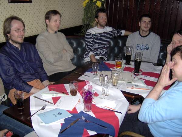 Am Abend wurde noch gut gegessen und über den anstehenden Spanienurlaub gesprochen. Außerdem wurde ausgerechnet, wie der Stand für die Mannschaften war, die gefährdet waren abzusteigen. Des Weiteren konnten wir einige gastgebende Chemnitzer verwundern, als sie uns fragten, wo wir übernachten würden und wir darauf antworteten, dass wir in einem kleinen Dorf 2 km entfernt schlafen würden. Das fanden sie total unglaublich und sie wären nie auf die Idee gekommen, aber für uns war es das Naheliegendste. Jedoch stimmte die Aufteilung nicht ganz, da wir acht Leute auf drei Quartiere verteilt waren, denn es gab nur sieben Betten in der eigentlichen Pension, deswegen musste Riker in einem Haus im Wald schlafen und durch Danas kurzfristigen Ausfall musste das Frauendoppelzimmer aufgegeben werden und es wurde ein weiteres Einzelzimmer benötigt. Dadurch war Roland gezwungen in noch einer anderen Unterkunft zu verweilen.