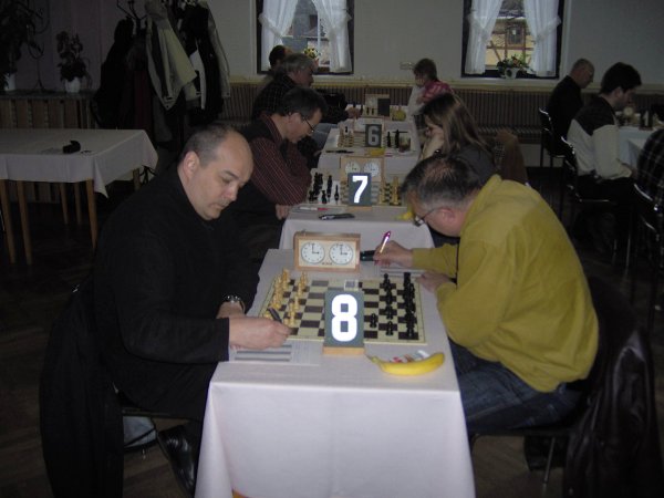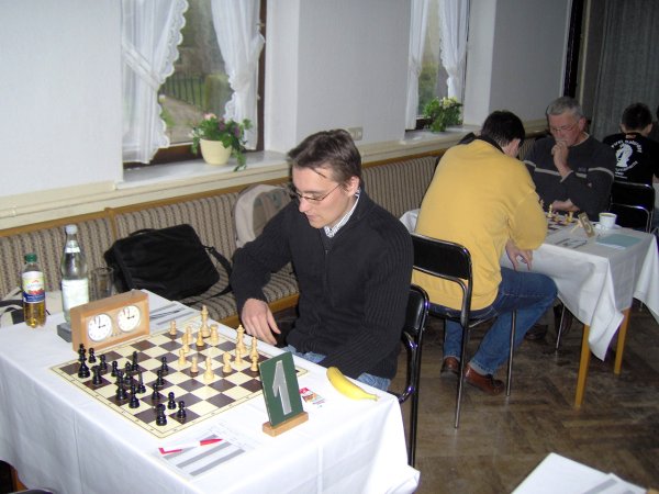 Der Ausgleich war jetzt nicht mehr möglich. Holly gewann allerdings gegen Andreas Otto einen Läufer, aber zum Leidwesen von Riker gab der Gegenspieler nicht so einfach auf. Aber als auch diese Partie mit einem letzten Gewinn in dieser Oberligasaison beendet wurde, traten wir die Heimreise an. Für Riker war es aber wichtig noch rechtzeitig nach Jena zu den entscheidenden Abstiegskämpfen von Jena, Magdeburg und Naumburg zu kommen und deshalb gab es keine langen Abschiede.