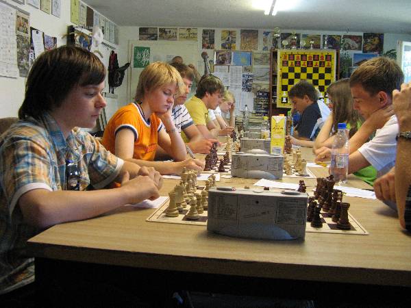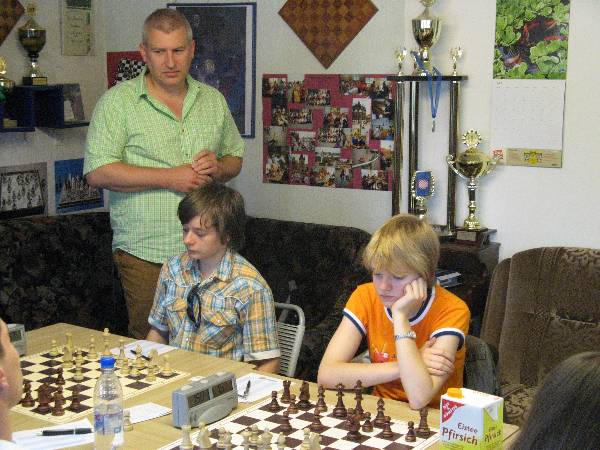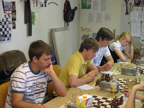 Am 22.06.08 fand nun das Spiel statt. Normi gab uns noch heiße Tipps, wer besser mit Weiß und wer besser mit Schwarz spielen sollte. Da unsere Jugend gern lange schläft, haben wir uns auf die Beginnzeit 11:00 Uhr geeinigt. Pauline und Frido waren dann 9:30 da und der Rest 10:10 Uhr. Es ging halt um viel, da wurde das Schlafbedürfnis dann doch etwas zurückgestellt.