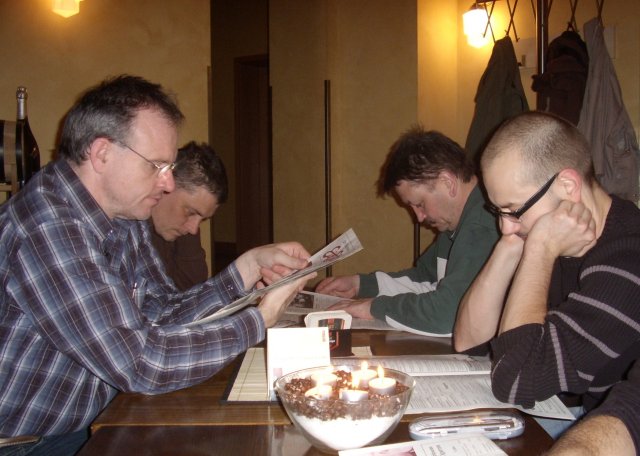 ... war nicht nur ein Spiel im Rahmenprogramm des Gegö 2005 (Franzi gewann das Turnier), sondern wurde auch vom Jenaer Universitätsprofessor Ingo Althöfer entwickelt. Dass ich das "Einstein" als Samstag-Abend-Kneipe ausgewählt habe, weil es am besten in den Bericht passt, ist allerdings ein Gerücht. Das "Bohème" beispielsweise (immer Guavensaft vorrätig) war einfach zu voll. Davon abgesehen ist das "Einstein" aber auch stets eine gute Wahl.