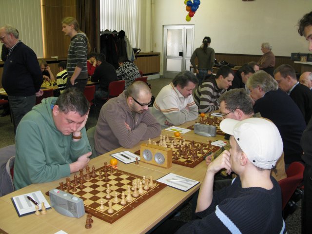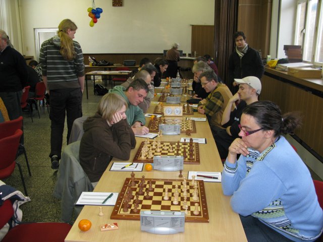 Wir starteten pünktlich in einem Gebäude der Straßenbahn-Gesellschaft Leipzigs, bloß Jogi und einige Gegner waren zu spät angereist. Riker gewann an Brett 8 in der Eröffnung schon recht früh einen wichtigen Zentrumsbauern und konnte diesen Vorteil mit großem Bemühen weiter ausbauen, bis er schließlich nach guten fünf Stunden den Kontrahenten in die Knie gezwungen hatte. Die Stellung war vorher die ganze Zeit klar besser, aber die Gegnerin namens Anet Gempe war ein zäher Brocken.