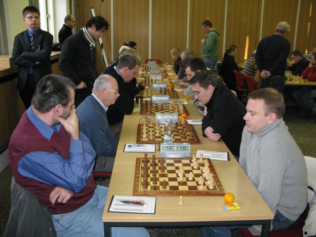 An Brett 1 hatte Holly gegen Steffen Weitzer zu kämpfen. Seine Eröffnung und das weitere Vorgehen waren hervorragend, sodass er eine bessere Stellung mit Weiß spielen konnte. Leider wurde er dann in Zeitnot gebracht und der Gegner hatte die bessere Position. Es handelte sich dabei um ein Turm-Leichtfigurenendspiel mit Mehrbauern für den Leipziger, doch wie Holly richtig erkannte, hatte der gegnerische Läufer die falsche Ecke und auch diese Partie endete mit dem häufig auftretenden Remis.