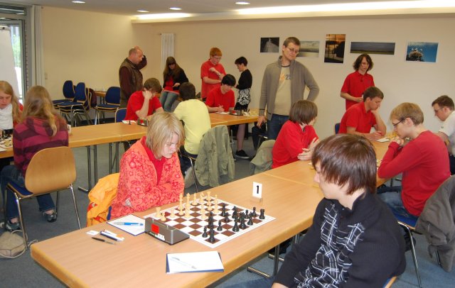 "Der Kampf ließ sich eigentlich gut an, denn wir hatten anfangs an allen (!) Brettern Vorteile. Allerdings war es nirgends im klaren Bereich und überall kompliziert. Im weiteren Verlauf zeigten die Gastgeber mehr Wettkampfhärte. Flori war als erster fertig. Ungewöhnlich, aber sein Gegner blitzte praktisch. Hier ließen wir gute Chancen ungenutzt, mussten am Ende aber über die Punkteteilung noch froh sein. Sebastian (in Zeitnot) und Frido mussten anschließend die Segel streichen, wonach es für die anderen schon schwer, aber von den Stellungen her durchaus noch möglich war. Schließlich kam an Zählbarem nur noch Josis Remis hinzu. Mehr im Partienteil.
