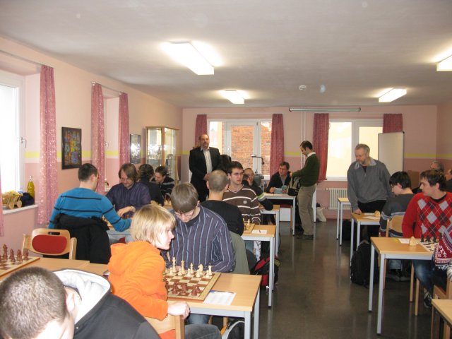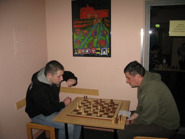 Nachdem das übliche Ritual des Uhrenstellens geschafft war, konnten die Kämpfe in der Magdeburger Jugendherberge beginnen. Auf meinem ersten intensiveren Rundgang war ich mit den Stellungen recht zufrieden. Bei Dana, Yogi und Harald waren sehr undurchsichtige Stellungen auf dem Brett. Konkret durchgeblickt habe ich bei keiner, wobei ich bei Yogi ein gutes Gefühl hatte, Danas Stellung mir nicht so gut gefiel und ich bei Harald gar nicht erst versucht habe die Stellung zu verstehen.