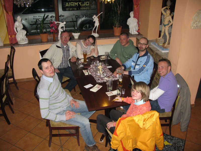 Löberitzer, AEMer, Unparteiischer und Teile der Mammutherde trafen sich beim Griechen (aus Akranes (Leuchtturm) + Karlovy Vary (Hirsch) wird Rhodos). Nur Geheimwaffe Konrad wurde mit den restlichen Mammuts in privaten Gemächern versteckt.