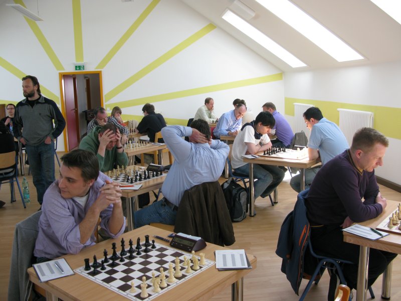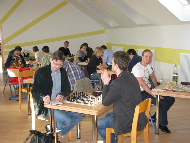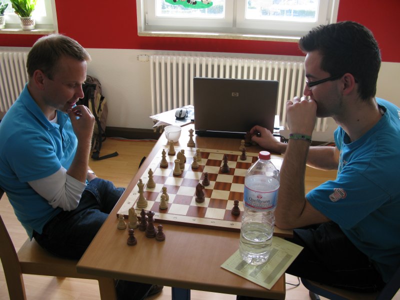 und Christian besser stand. Letzterer lief aber bei den Gewinnbemühungen in ein Matt, und mehr als += bzw. ein remises Turmendspiel mit Mehrbauer war trotz weiterer Brain'scher Bemühungen nicht rauszuholen. Also doch noch 4:4. Ein bisschen ärgerlich zwar, aber der Punkt war bereits angesichts der Sangerhäuser Niederlage einiges wert und stieg später noch im Kurs.