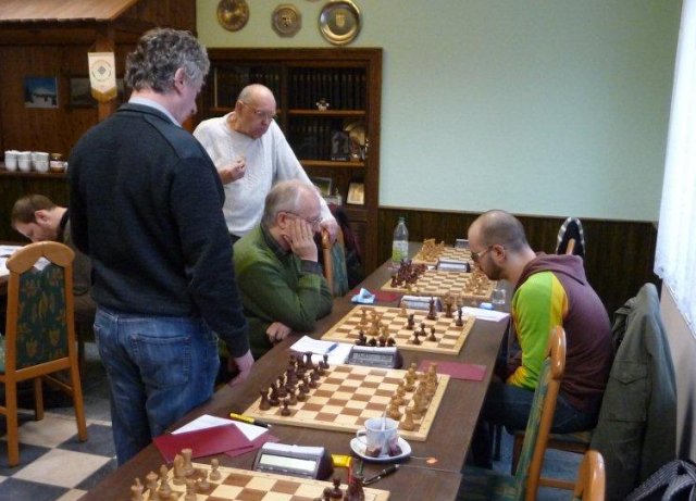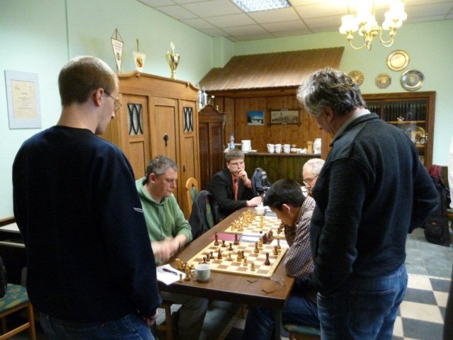 Die anderen Schwarzbretter konnten relativ problemlos ungefähren Ausgleich erreichen, Christian wohl sogar deutlich mehr, beherrschte er doch mit seinen Bauern das komplette Zentrum nach Belieben.