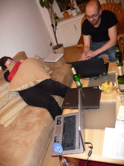 So sehr sich meine Stellung Stück für Stück verbesserte, so verschlechterte sich leider im Gegenzug Haralds Stellung. Harald zog mal den einen Randbauern, mal den anderen, stellte seine Entwicklung gänzlich ein, um sich dann anschließend auch noch taktisch einmachen zu lassen. Auch bei Holly entwickelte sich die Partie zu unserem Missvergnügen. Der kleine Materialvorteil hatte sich in einen kleinen Materialnachteil verwandelt, wobei sich das Zusammenspiel der verbliebenen Kräfte sich nicht recht zusammenfügen wollte. Alsbald stand es dann 3:2 für uns, Harald und Holly hatten verloren, Martin und ich gewonnen.