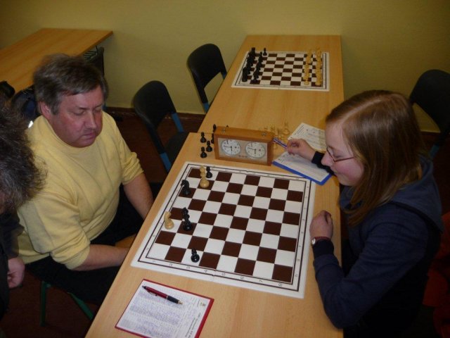 4 Stunden ihre Partien noch gewinnen konnten. Reyk gelang es in einem Springer- Läufer-Endspiel seinen Springer gegen den Läufer zu tauschen und sich mit dem besseren König die Bauern seines Gegners abzuholen. Annika setzte ihre a- und h- Bauern in Bewegung, welche ihr Gegner letztendlich nicht mehr aufhalten konnte.