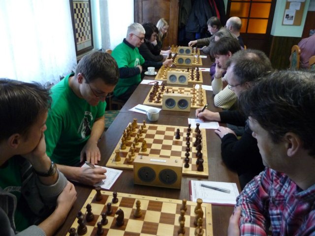 Das Match gingen wir dann mit Jürgens neuen Vereins-Shirts an (Dana: "It's green."). Gut beschäftigt mit meiner Partie kann ich leider nur flüchtige Eindrücke von den anderen Brettern wiedergeben.