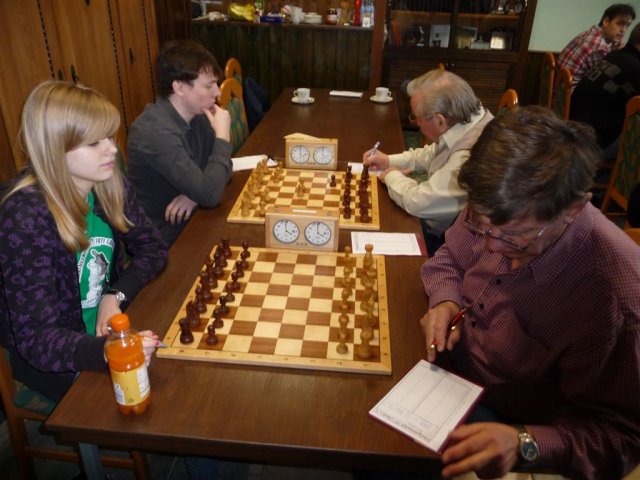 Annika zeigte sich wieder in guter Form und sorgte postwendend für den Ausgleich. Unsere Mädels entwickeln sich zu echten Leistungsträgern :-) So auch Patricia, die diesmal etwas vorsichtiger agierte, aber mit Schwarz nie Probleme hatte, das Remis zu sichern.