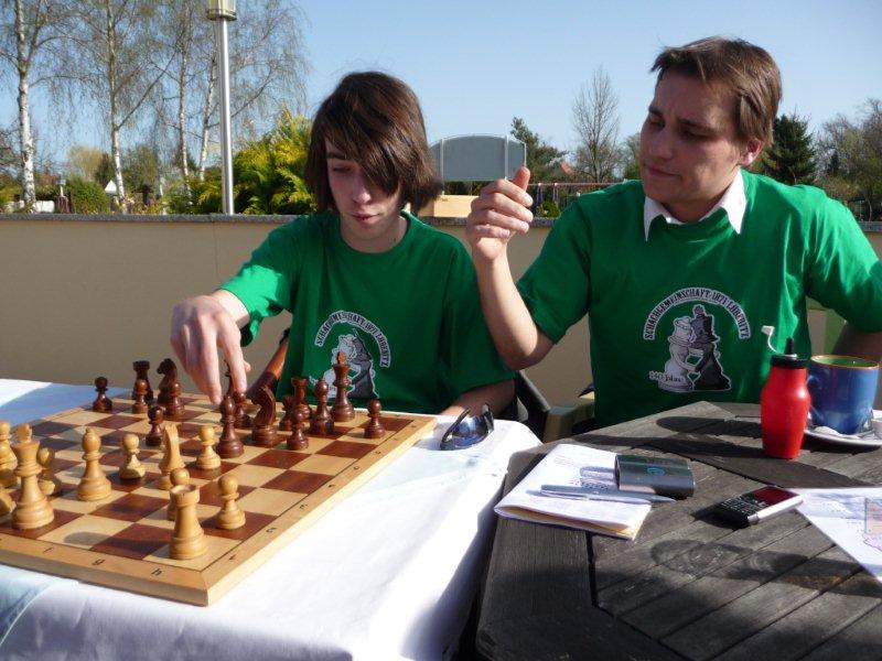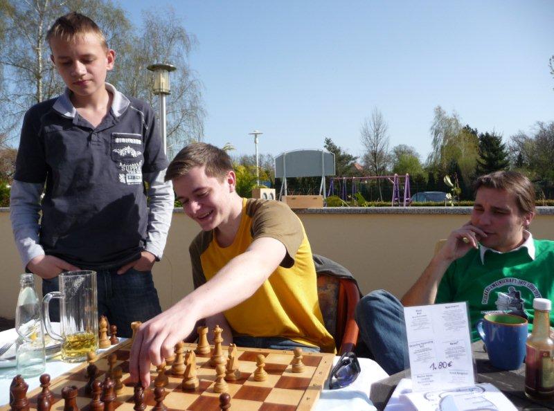 Christian musste sich mit Rolands Lieblingseröffnung, dem Orang-Utan, auseinandersetzen. Es gelang ihm seinen Gegner geschickt auszutricksen und einen wichtigen Bauern am Damenflügel zu gewinnen.