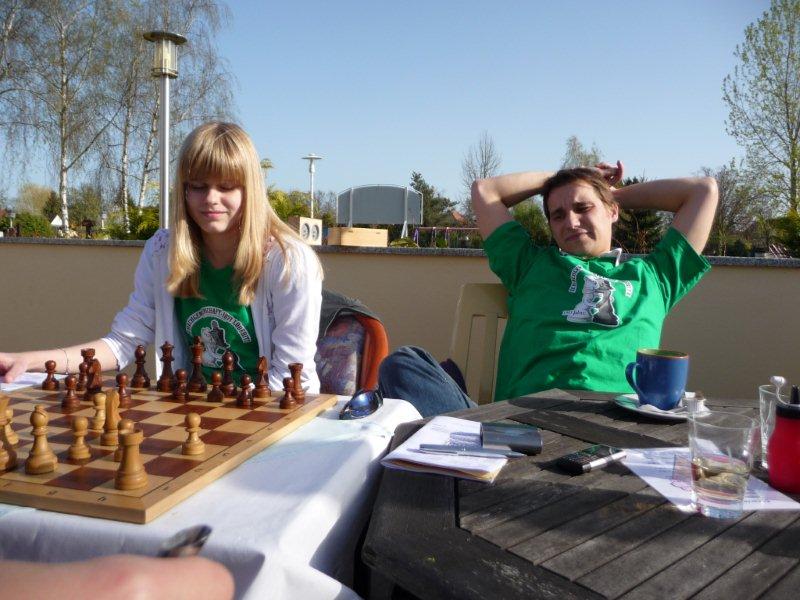 Kurz darauf hat Patricia mit ihrem Gegner den Friedenspakt geschlossen. Ein Mehrbauer des Gegners im Läufer-Bauern-Endspiel reicht eben doch nicht für einen Sieg, sondern nur für ein Remis aus. Aber sehr gut gespielt, und das gegen Lutz Wiegand, Hut ab!