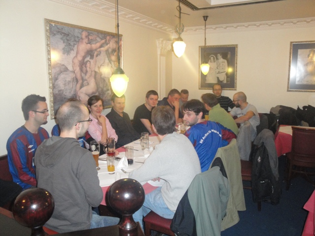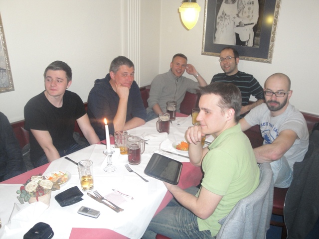 Weiter ging es mit dem Großteil von AEM zum Griechen um der erfolgreichen Runde ein erfolgreiches Essen folgen zu lassen. Bevor allerdings das erste Mahl auf dem Tisch stand, war auch schon das erste Bier geleert, was die Gleichung (vielleicht die Weltformel?!) schließt: Punkt + Riegel = Aufstieg + Bier!