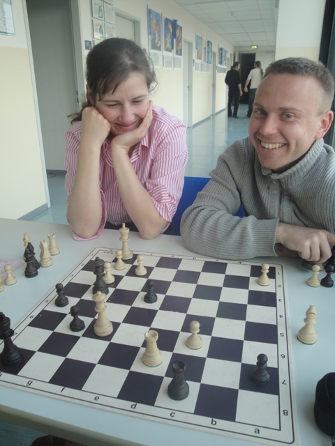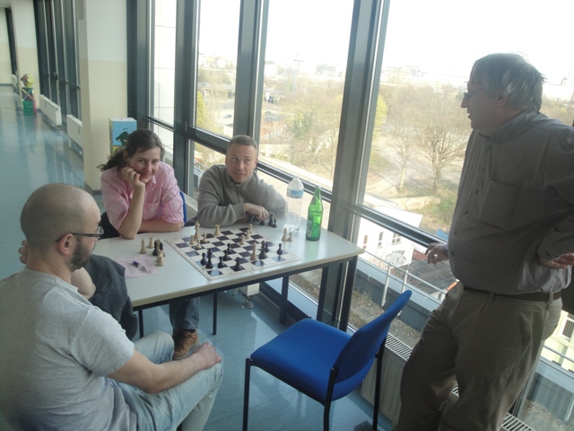 Zu guter Letzt lief nur noch die Partie von Brain gegen Tetyana. Nach dem guten alten Wolga-Gambit, was ich als nicht anerkannter Wolga-Experte von Brain recht schlecht, da ambitionslos, behandelt fand, kam er auch in eine unangenehme Stellung und musste letztendlich ein Turmendspiel mit Minusbauern verteidigen. Dieses war sicher an der einen oder anderen Stelle für Tetyana gewonnen, aber Brains Zähigkeit zahlte sich mal wieder zum Schluss aus und nach 6,5h!!! einigte man sich auf das von allen anderen langersehnte Remis.