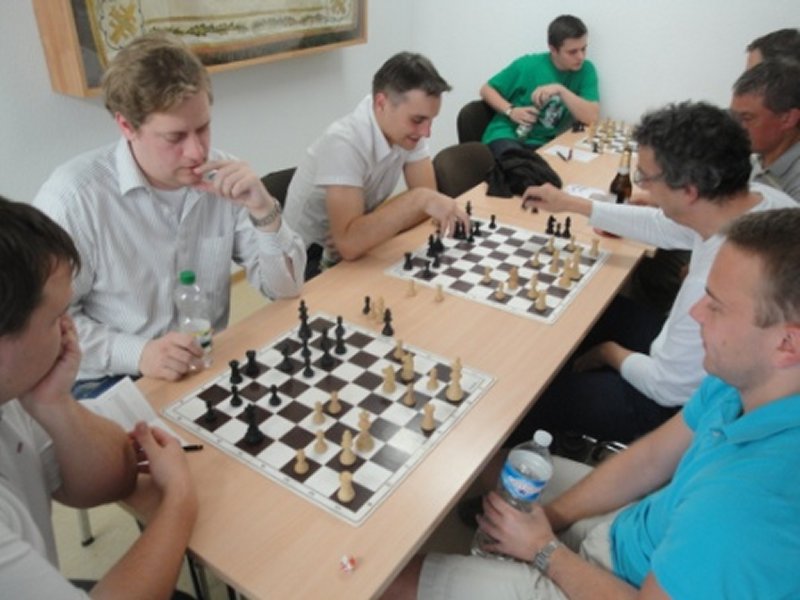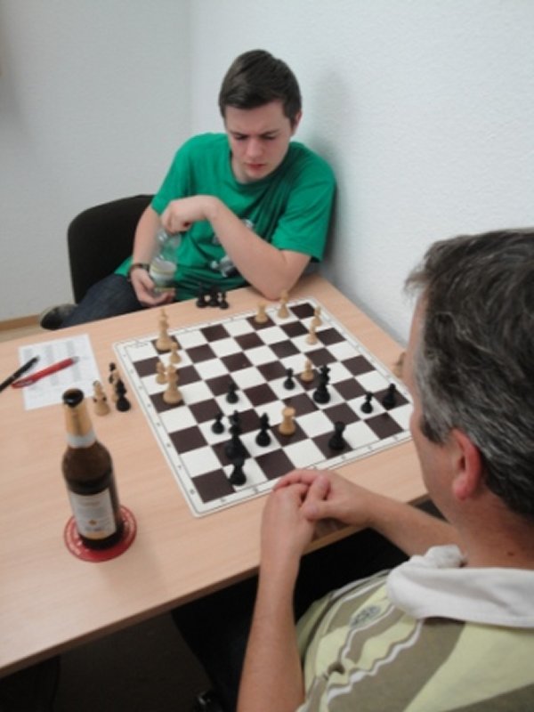 Yogi über große Initiative verfügte – kamen wir anschließend an fast jedem Brett zu entscheidendem Vorteil. Yogi siegte in überzeugender Manier, Normi führte sein D+S-Endspiel sicher zum Sieg (inklusive abgelehntem Remisgebot bei Matt in -3). Ich nahm das Remisgebot meines Gegners an, da ich keine vorteilhafte Fortsetzung für mich entdecken konnte.