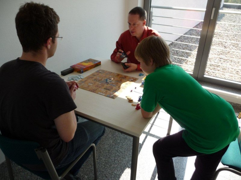 Bei den meisten war die Vorbereitung recht schnell abgeschlossen. Entweder gab es nicht bei jedem Gegner so viele aktuelle Partien oder es sollte eine gut bekannte Stellung aufs Brett kommen. Also zerstreuten sich die Spieler entweder zur Tischtennisplatte, um sich auch körperlich noch zu beweisen, oder blieben am Tisch sitzen und kommentierten die sehr interessante, wenn auch unengagierte Spielweise einiger Sportler. Normi und Christian fuhren dann weiter nach