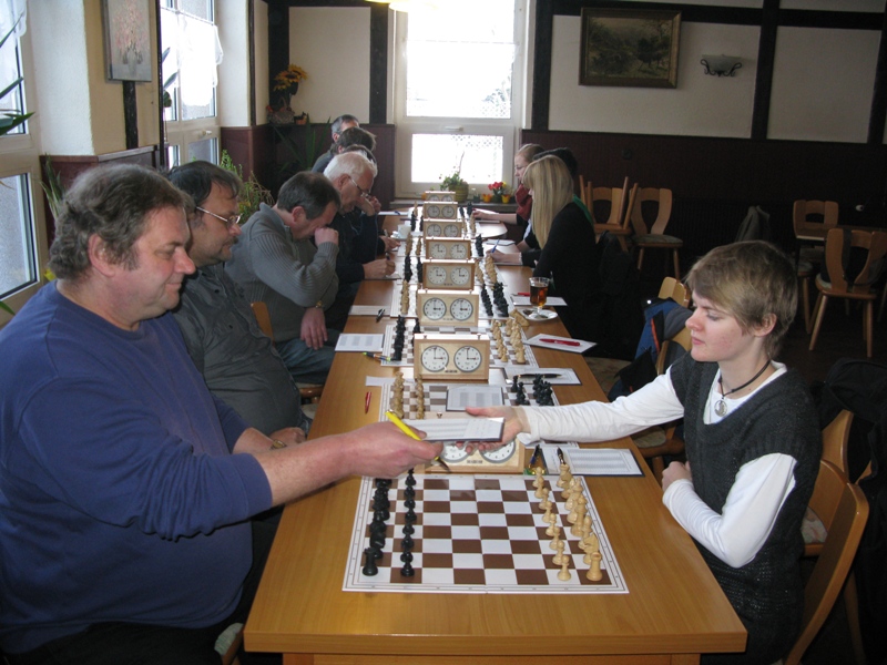 Zu allererst holte Sebastian einen halben Punkt, danach gewann Pauline glänzend und mit einer sehr guten Partie. Anschließend machte Norman Remis, worüber er sich sehr ärgerte, doch durch Reyks nächsten Punkt war alles wieder im Lot. Doch leider verlor Patricia und gleich darauf Annika, was beide zutiefst ärgerte.