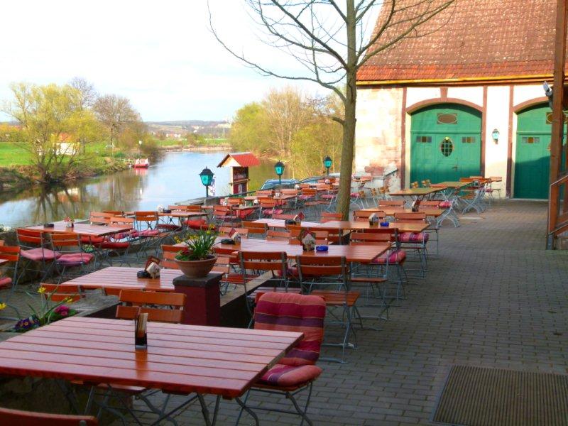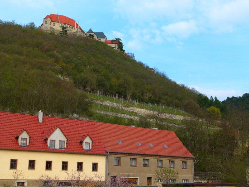 Nur wenige huntert Meter davon entfernt gibt es mit dem "Alten Felsenkeller" und seinem herrlichen Blick ins Saaletal zur Schönburg ein wirklich lauschiges Plätzchen. Die Kenntnis darüber verdankte ich dem Oberligaauftakt der Mammuts und dem Großcousin des Wirts ;-)
