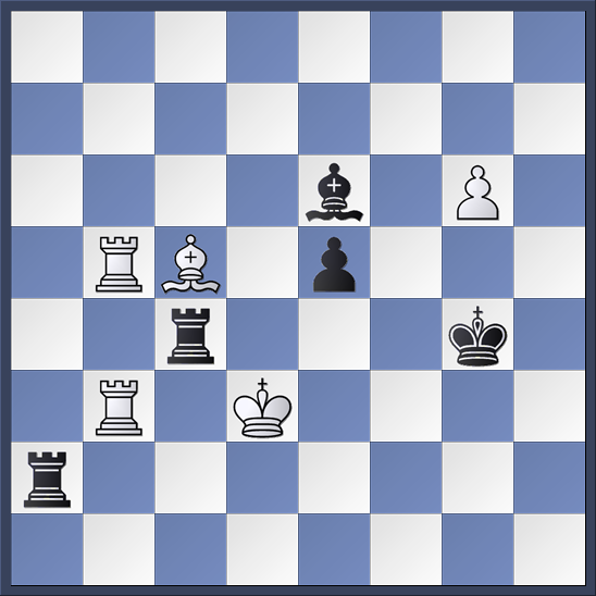 In der Folge konnte Stefan seinen Mehrbauern nicht in Szene setzen. Im Gegenteil wirbelte Sebastian ein Mattnetz zusammen. Die Krönung hätte hier 42...Kf3 bedeutet, wenn Weiß das Matt nur unter Figurenverlust (43.Tb2) abwehren kann. Vermutlich ist es aber psychologisch schwierig, sich ins Abzugschach zu begeben (das der weiße König allerdings nicht zu geben im Stande ist).