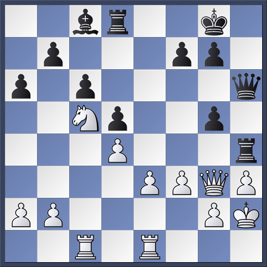 Gert ist normalerweise die Zuverlässigkeit in Person (bis dato 4/5), aber hier unterlief ihm mit dem schon angesprochenen 29.S:b7 L:b7 30.Dc7 ein folgenschwerer Fehler: Er hatte das schwarze Damenschach auf d6 übersehen (Horizontale Züge entgehen uns laut "Invisible Chess Moves" leichter als vertikale).