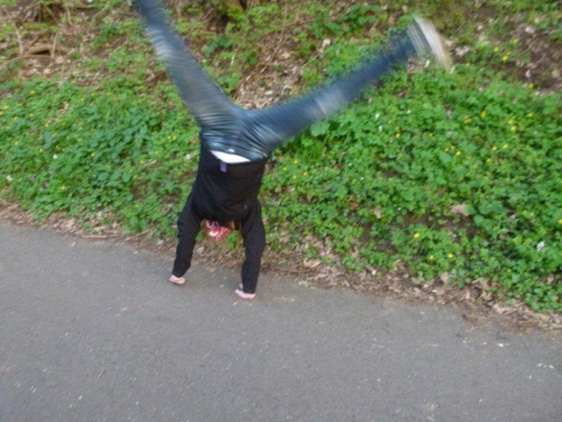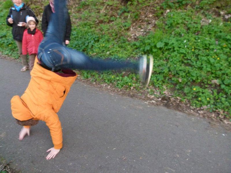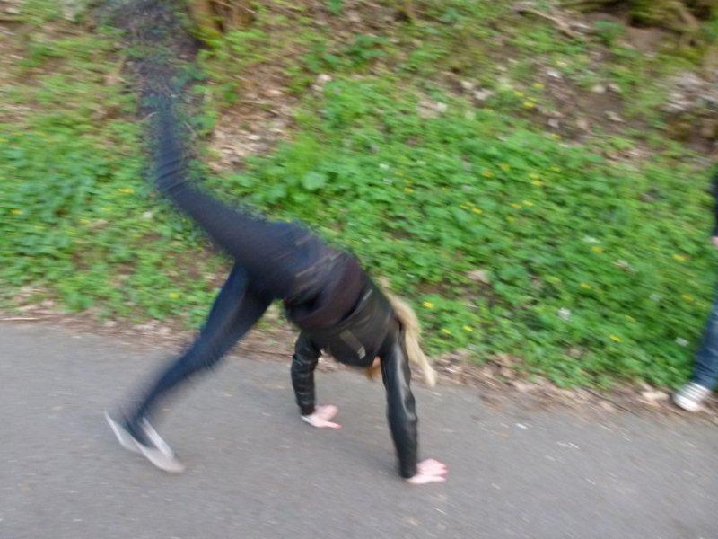 Der anschließende Freiluftspaziergang geriet dank Joselines Radschlag-Animationen schnell zum Turn- und Trimm-Dich-Pfad.