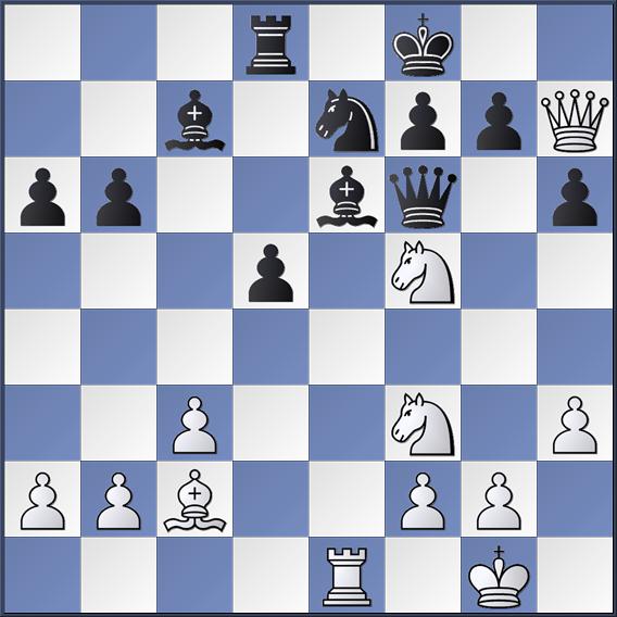 kann Holly mit 27. Dh8+ Sg8 28.S5d4 und der Drohung Lh7 den Gegner zu 27... g5 zwingen, was aber 28. Dxf6 Sxf6 29. Txe6! zur Folge hat.