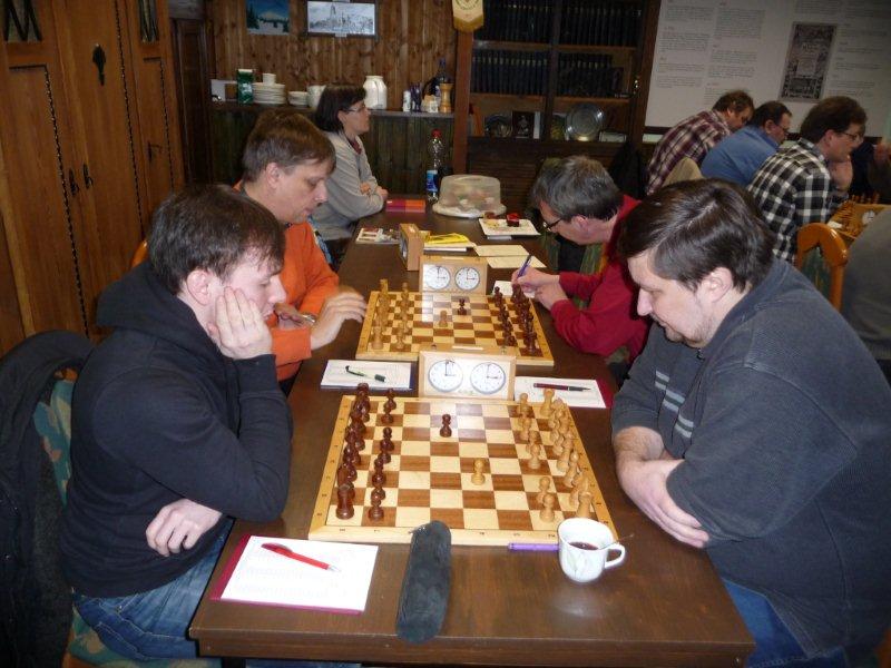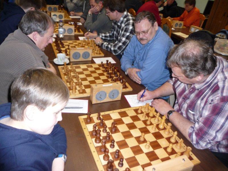 Thomas Hähndel an Brett 8 ("Wo ist Brett 8?" "Na da hinten!" "Achso, naja mit den hinteren Brettern kenn´ ich mich nicht so aus, ich spiele sonst immer an Brett 1 ...") hatte eigentlich eine gute Stellung, doch am Ende auch Zeitnot und verlor dadurch.