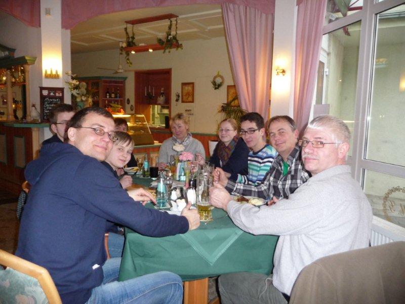 Die anderen (Reyk, Mikly und Konstantin) kämpften sich durch das Schneechaos nach Halle, die Besichtigung wurde zugunsten des "Spielehaus"-Besuches auf Zeiten mit besserem Wetter verschoben. Leckeres Essen und einen gemütlichen Abend gab es anschließend bei Familie Niegsch.