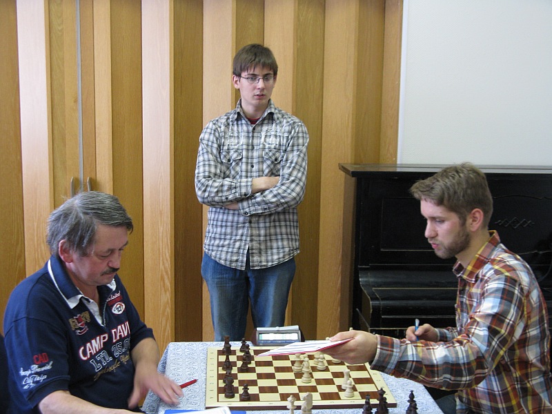 Christian gelang das problemlos, da sein Gegner über keinerlei aktives Spiel verfügte. Dafür musste sich Martin umso mehr quälen. Seine friedvollen Avancen wurden naturgemäß beim Stand von 3 : 4 aus Sicht der Köthener nicht erwidert. So zog sich der Kampf nach der ersten Zeitkontrolle dann doch ganz schön. Nach langem Hoffen und einigen bangen Momenten war dann doch der Friedensvertrag unterzeichnet.