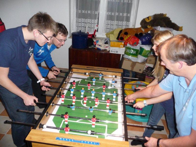 Uwe hat uns schon im Voraus angeboten bei ihm zu Übernachten. Dort gab es abends noch leckere Pizza für jeden nach Wunsch und ein kleines, lustiges, z. T. frustrierendes Kickerturnier.