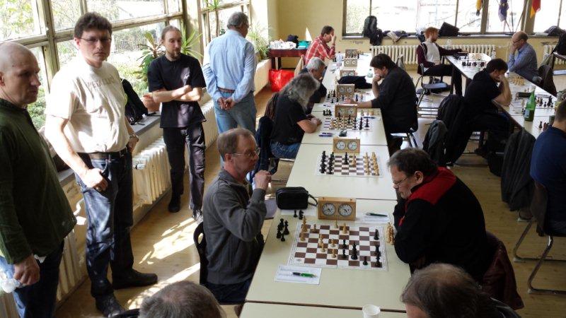 Recht früh zeichnete sich ab, dass uns auch ein 4:4 zum Aufstieg genügen sollte, denn Naumburg erarbeitet sich schnell 2 Remis und eine klare Gewinnstellung gegen Piesteritz. Unser Brettpunktekonto sorgte dafür, dass wir auch bei Punktgleichheit mit Piesteritz vorne liegen würden.