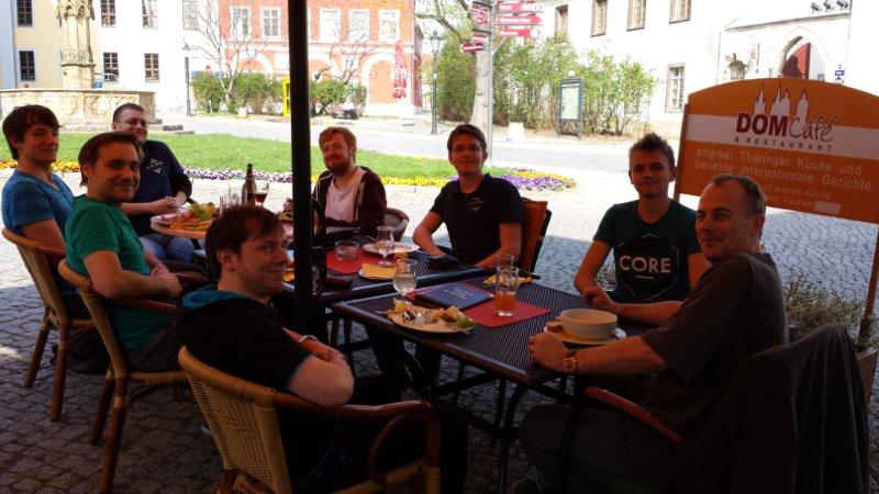 Unsere zwei noch verbliebenen Recken erhielten nach der Piesteritzer Niederlage den Freifahrtschein, sich nach Belieben den Gewinnversuchen hinzugeben. Münzi führte seine überlegene Stellung zum Sieg, Reyk versuchte sich noch ein wenig am Ausquetschen von Minivorteilen, stellte aber seine Bemühungen ein, um das gemeinsame Essen nicht zu gefährden. Am Ende stand ein souveräner 5:3-Sieg und der Aufstieg in die Verbandsliga. Dieser wurde im Schatten des Domes auch noch gebührend gefeiert, bevor wir uns alle wieder Richtung Heimat zerstreuten.
